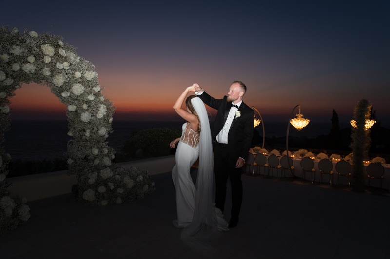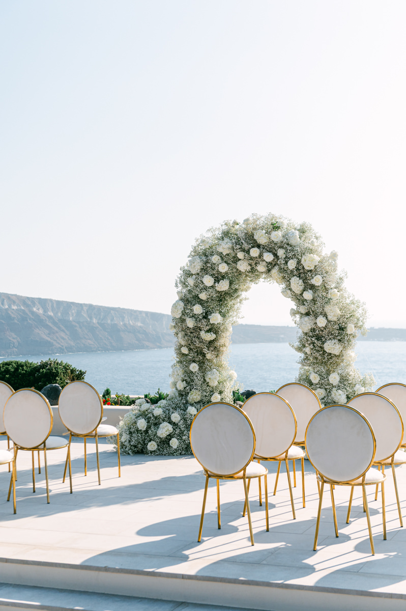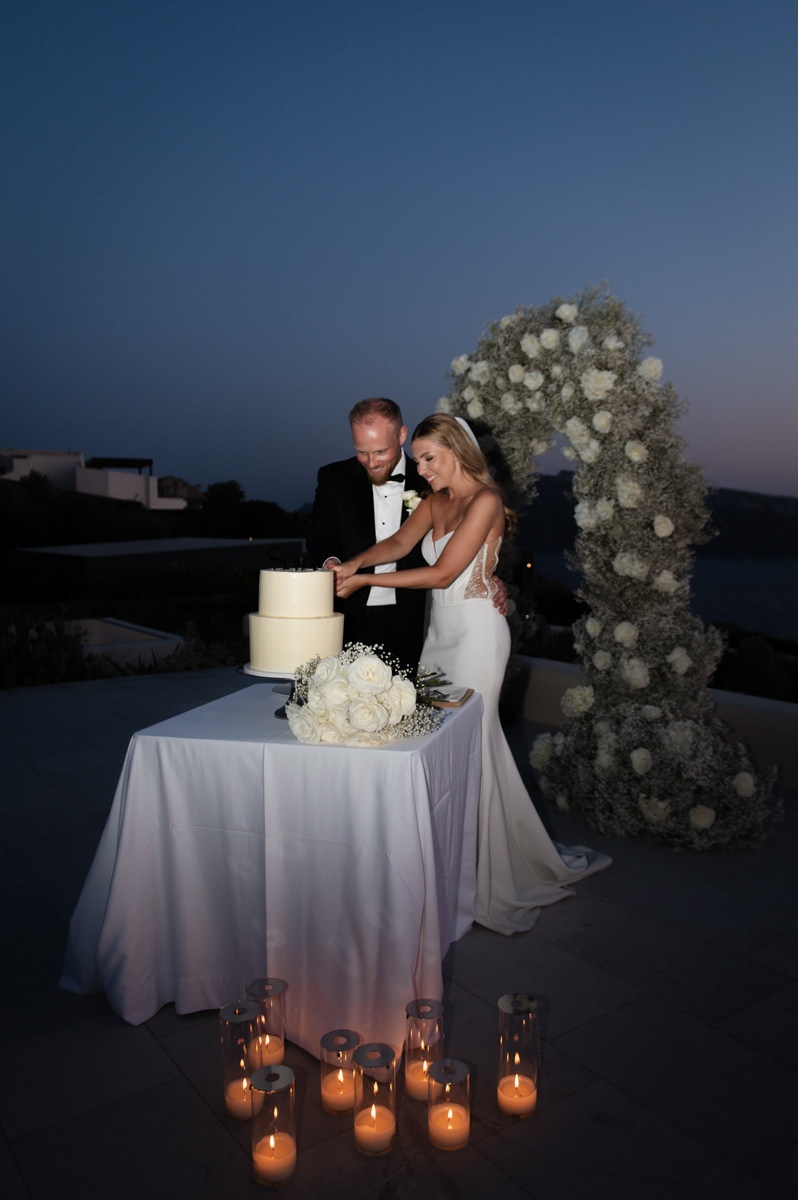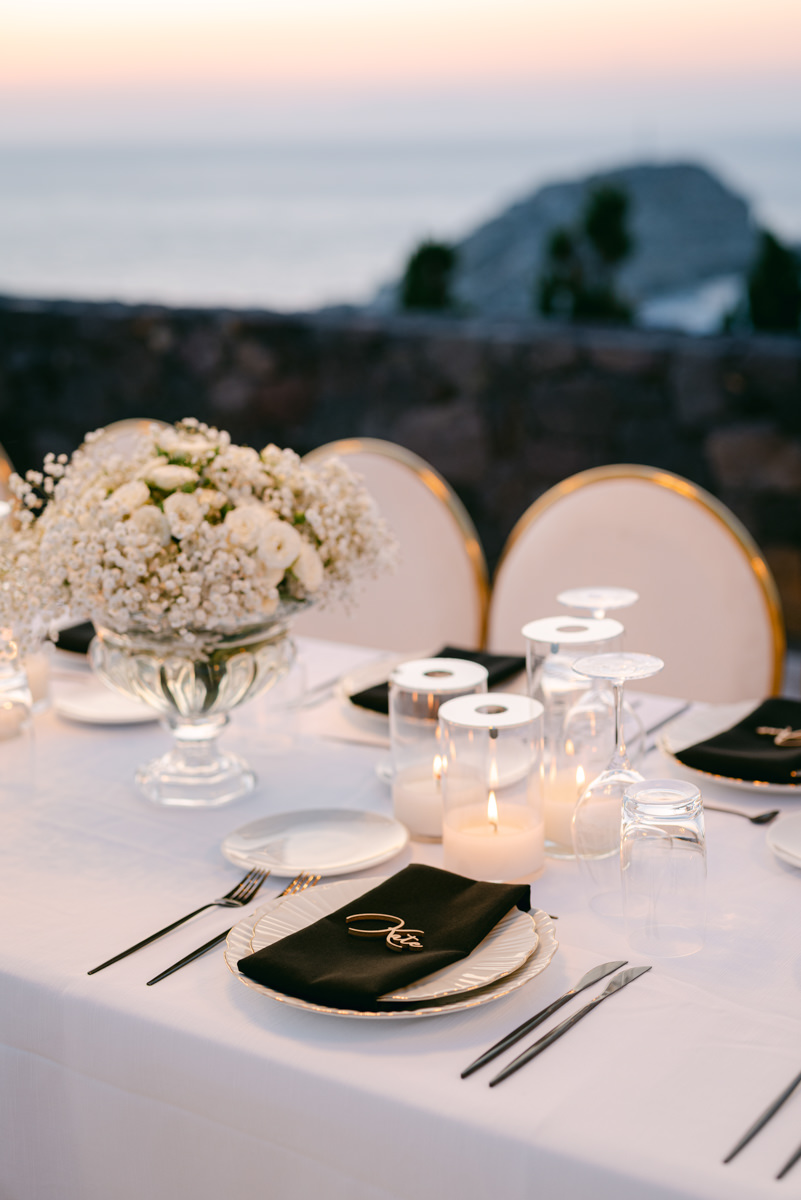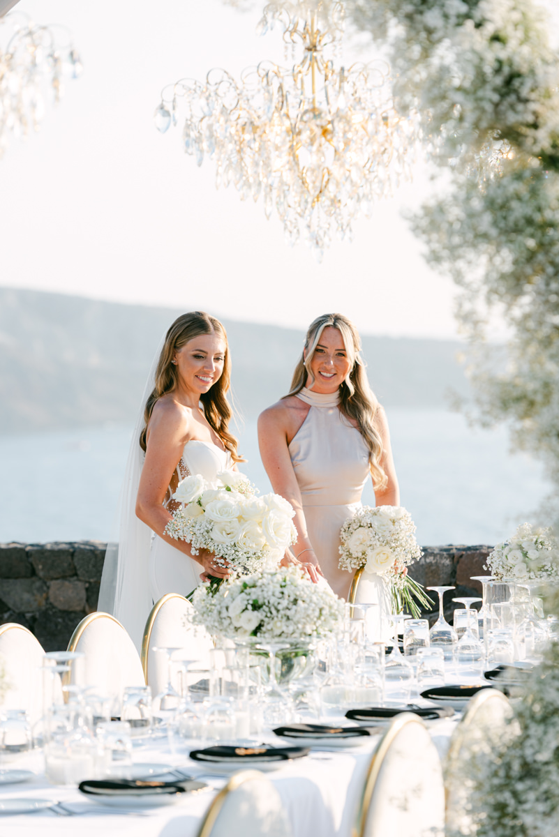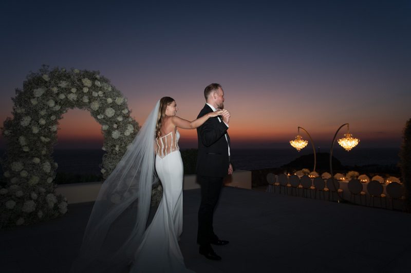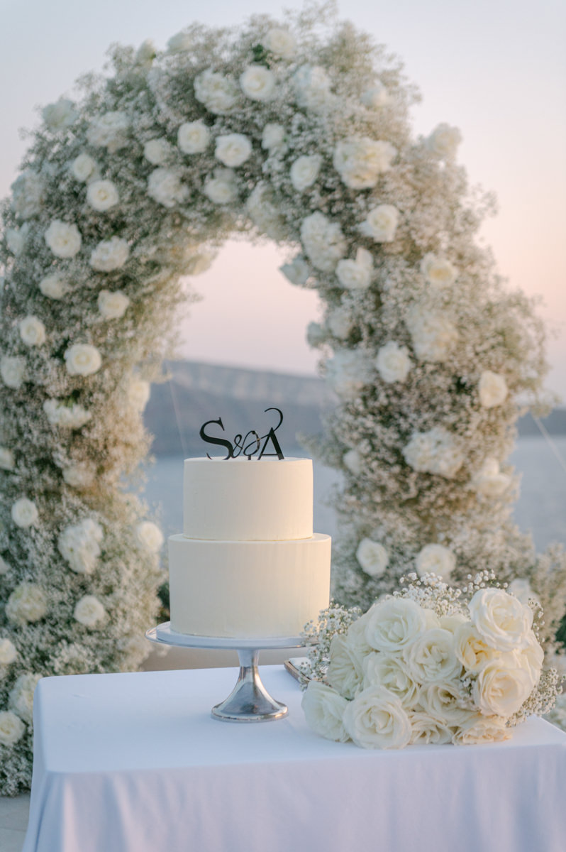 The majestic Cycladic islands where the ancient volcanic land of Santorini embraces the infinite vistas of the Aegean Sea. Suspended above this beauty is the Canaves Epitome. A unique space where luxury and serenity come together. An elegant terrace made for the perfect setting for the celebration of Sophie and Alex with a beautifully curated weddingscape of soft colours and enchanting light.