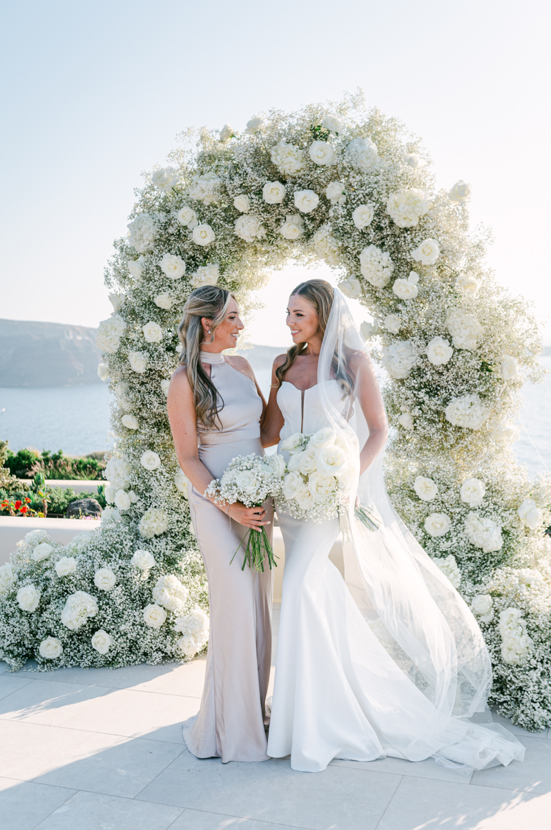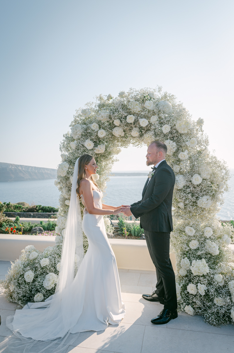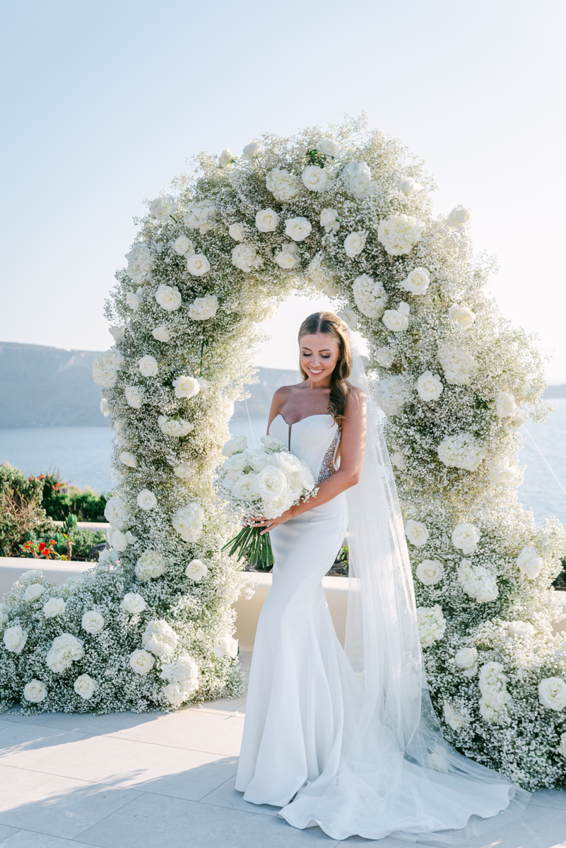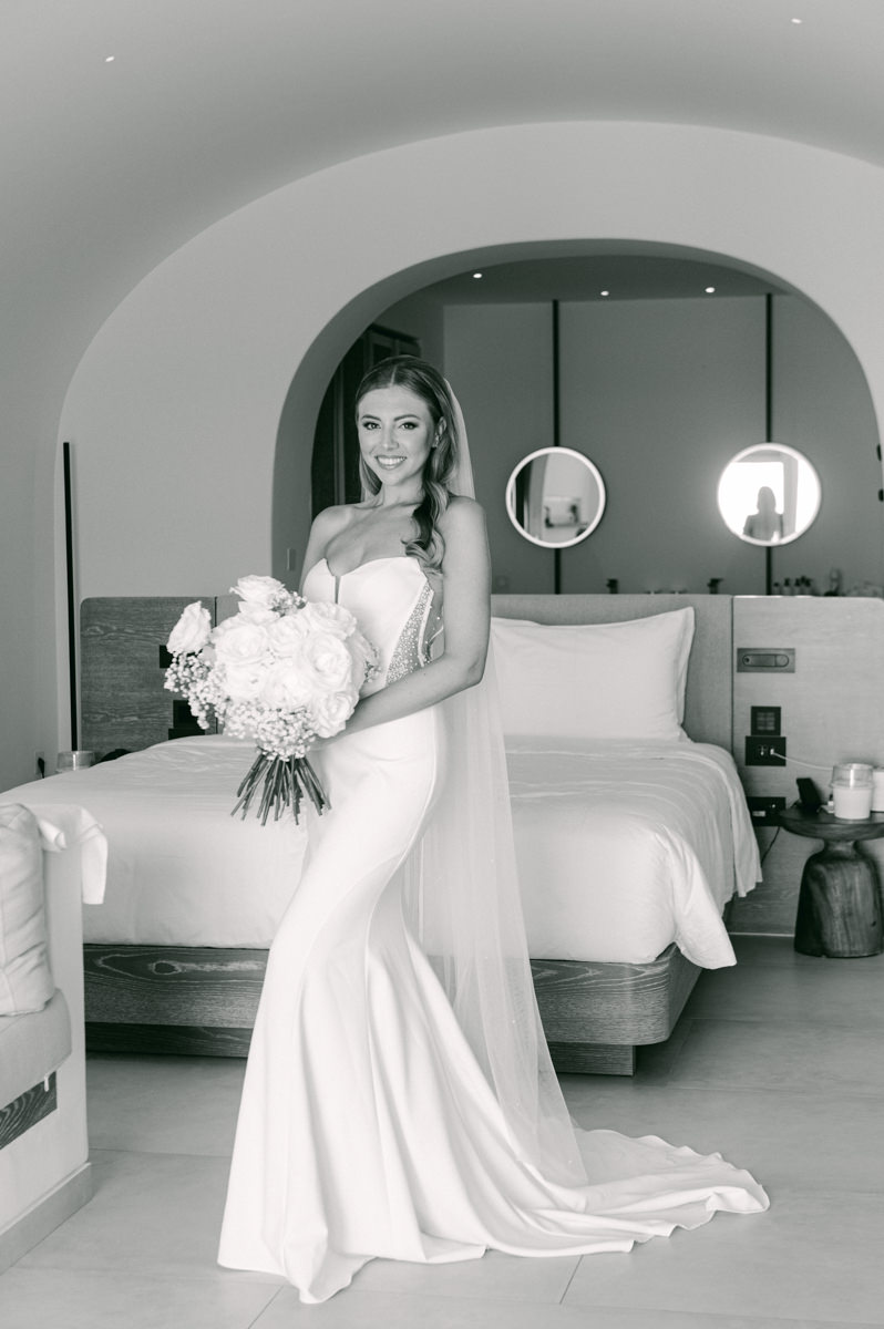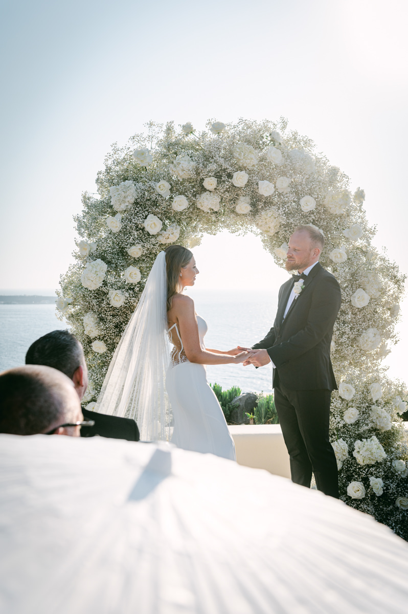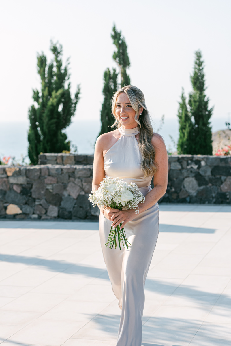 The majestic Cycladic islands where the ancient volcanic land of Santorini embraces the infinite vistas of the Aegean Sea. Suspended above this beauty is the Canaves Epitome. A unique space where luxury and serenity come together. An elegant terrace made for the perfect setting for the celebration of Sophie and Alex with a beautifully curated weddingscape of soft colours and enchanting light.