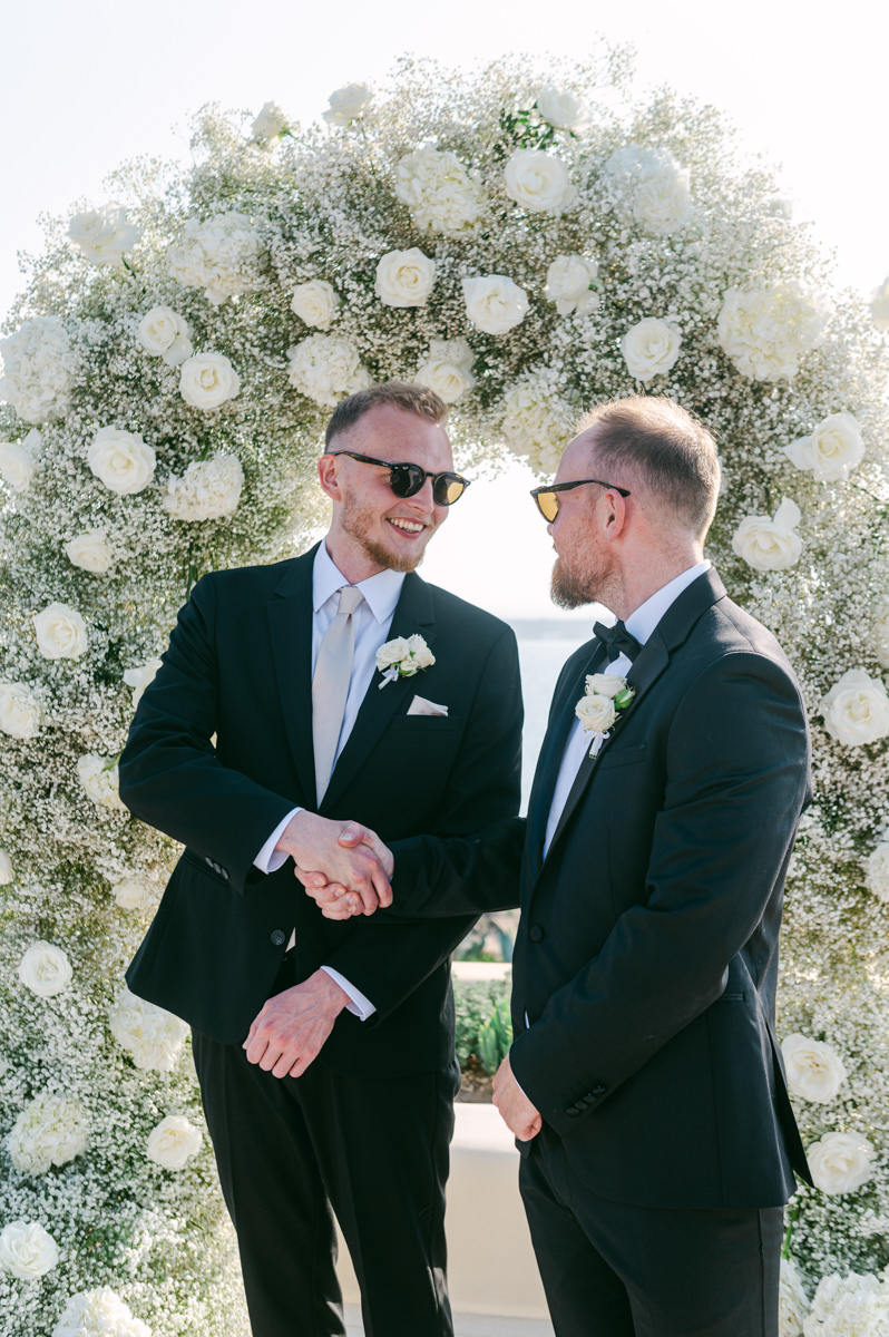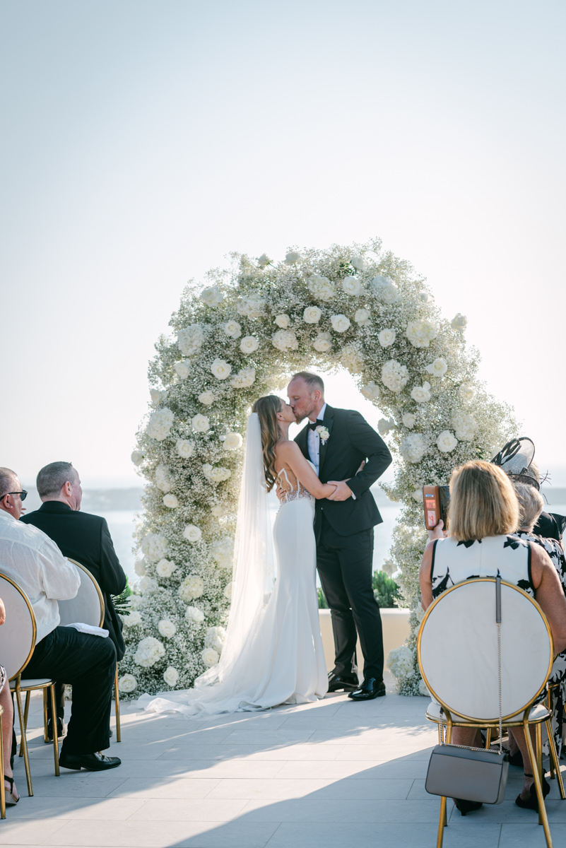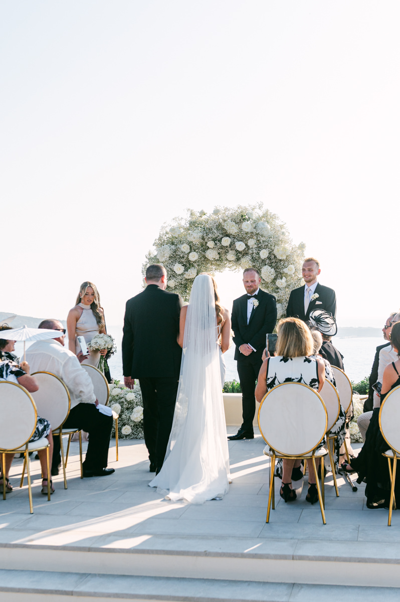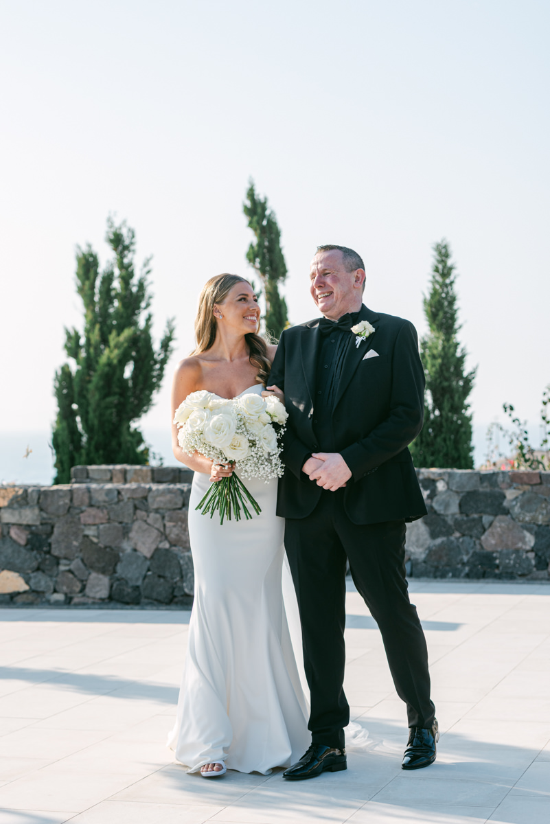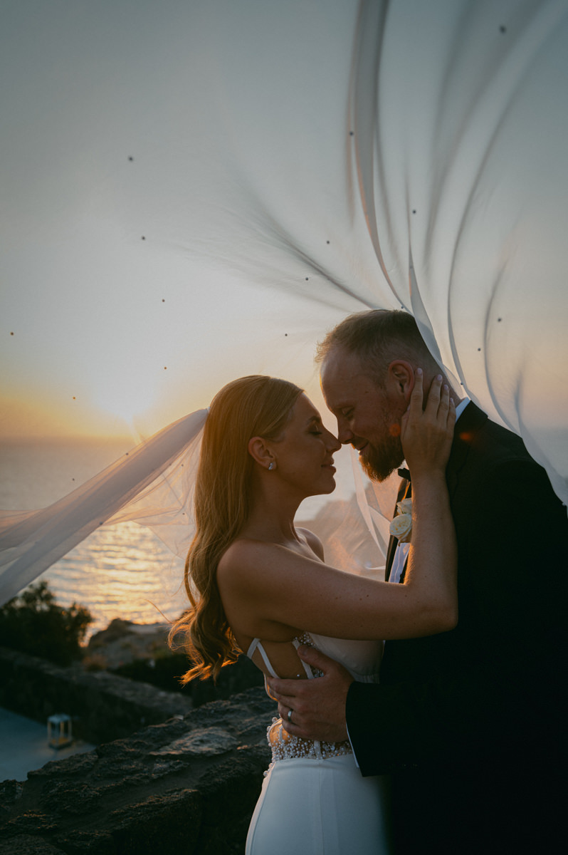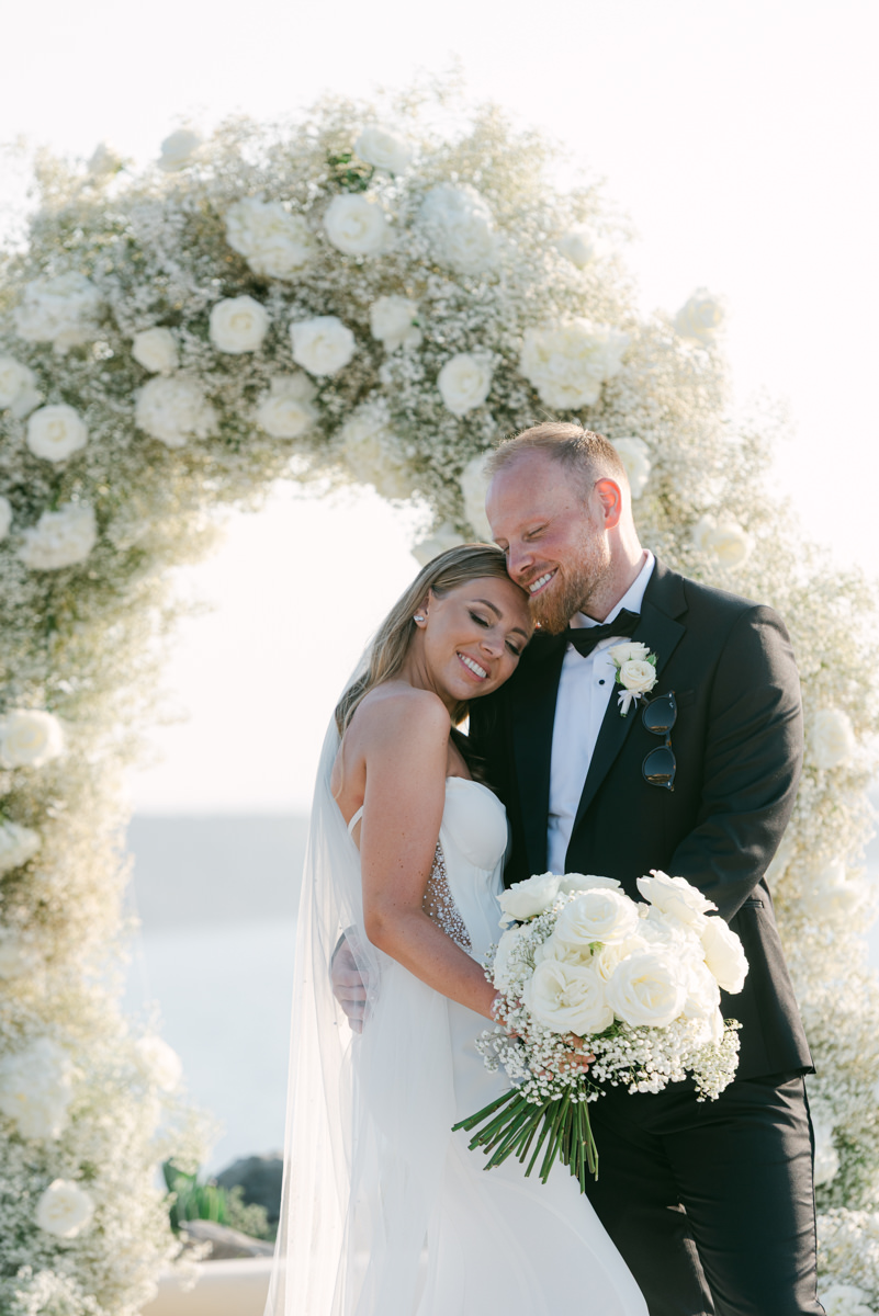 The majestic Cycladic islands where the ancient volcanic land of Santorini embraces the infinite vistas of the Aegean Sea. Suspended above this beauty is the Canaves Epitome. A unique space where luxury and serenity come together. An elegant terrace made for the perfect setting for the celebration of Sophie and Alex with a beautifully curated weddingscape of soft colours and enchanting light.